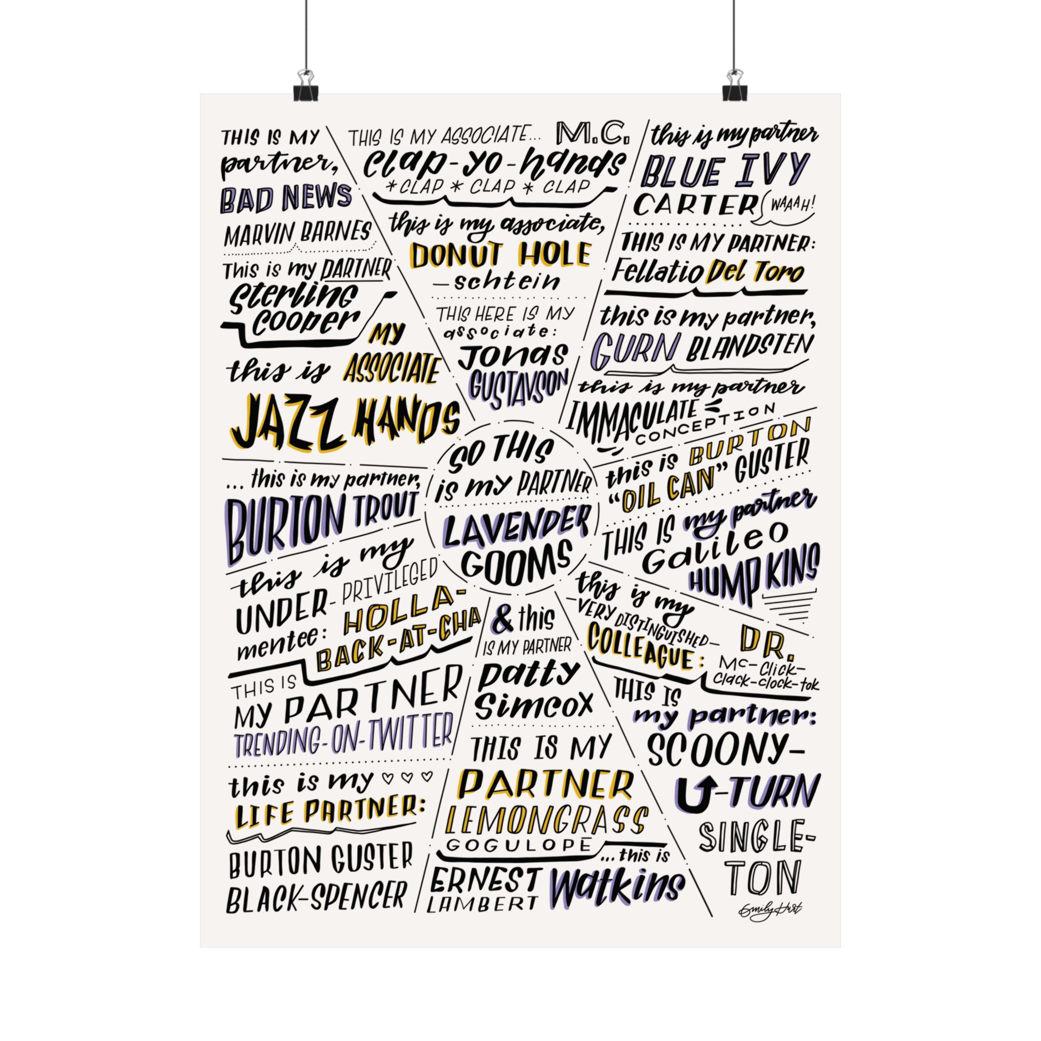 A collection of Shawn’s “Gus, Don’t be a…” quotes from the show “Psych,” starring James Roday Rodriguez and Dule Hill, as illustrated by Emily Hurt (@kerningiscaring).